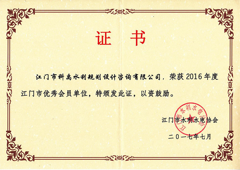 热烈祝贺我公司被评为2016江门市优秀会员单位