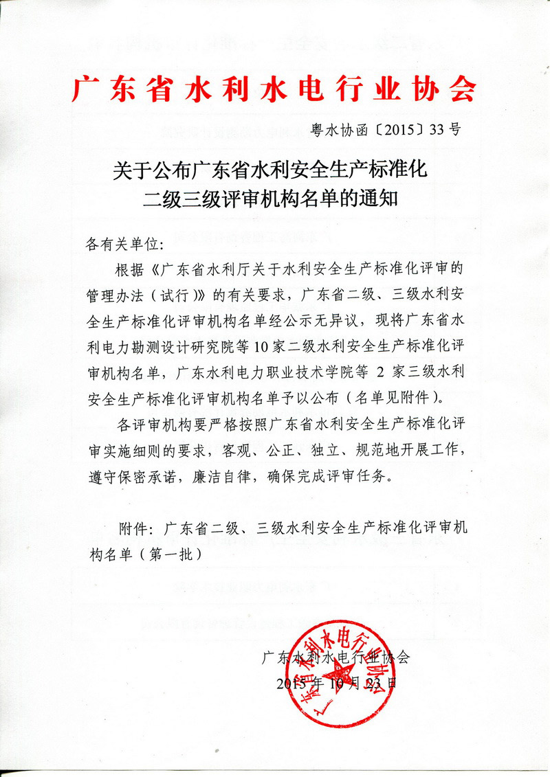 热烈祝贺我公司成为广东省首批二级水利安全生产标准化评审机构