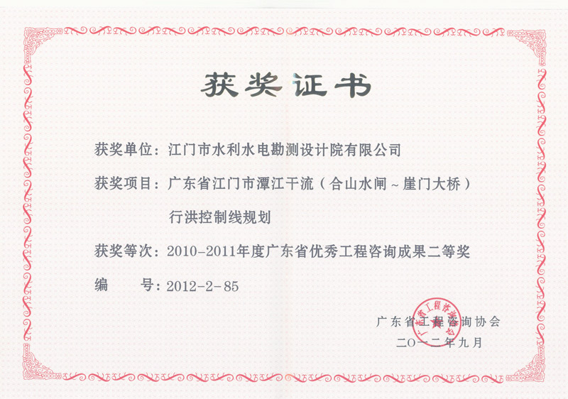 潭江干流荣获广东省优秀工程咨询成果二等奖