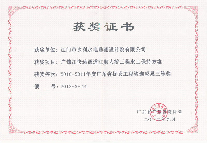江顺大桥荣获广东省优秀工程咨询成果三等奖
