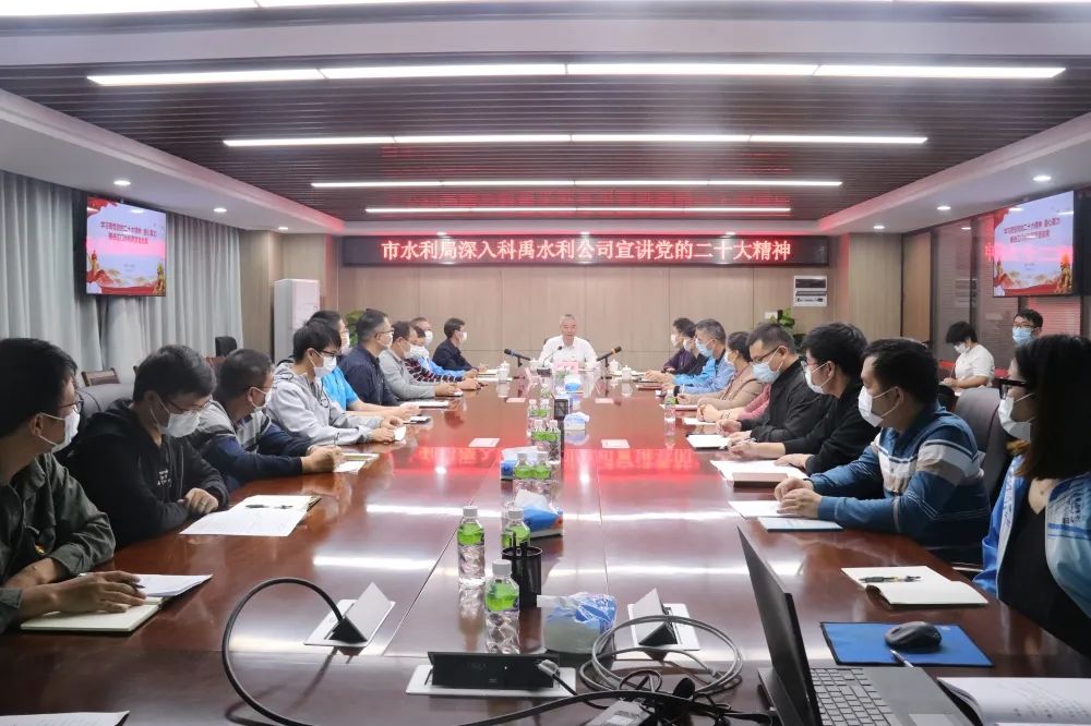 11月8日,市水利局党组书记陈树歆到我公司宣讲党的二十大精神,讲解党的二十大作出的新部署新举措,对我公司进一步学习贯彻党的二十大精神提出了相关要求。