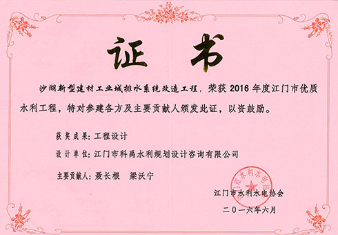 沙湖新型建材工业城排水系统改造工程获市优质水利工程设计奖