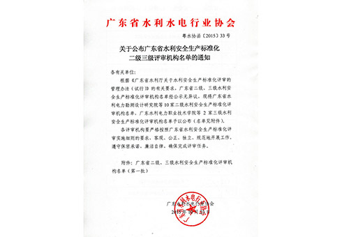 热烈祝贺我公司成为广东省首批二级水利安全生产标准化评审机构