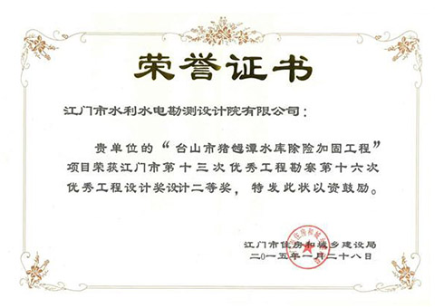 台山市猪乸潭水库出现加固工程获得市设计、勘察奖
