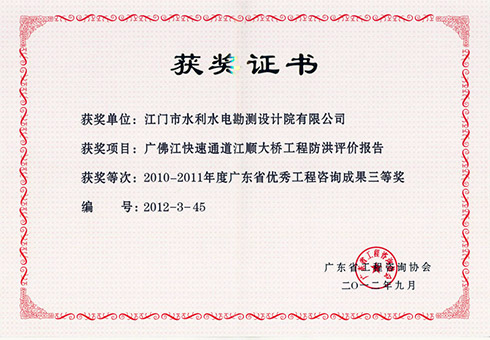 江顺大桥荣获广东省优秀工程咨询成果三等奖