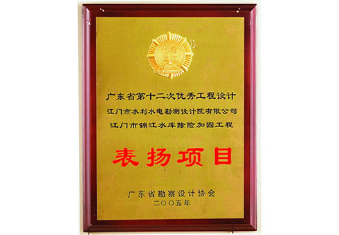 锦江水库荣获广东省第十二次优秀工程设计表扬项目
