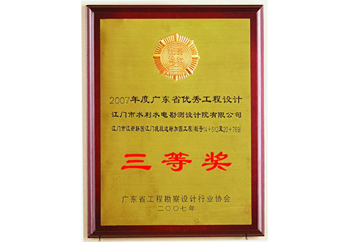江新联围荣获2007年度广东优秀工程设计三等奖