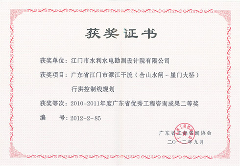 潭江干流荣获广东省优秀工程咨询成果二等奖
