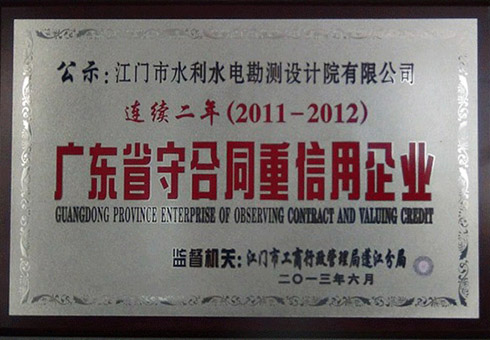热烈庆祝公司获得2011-2012年连续二年广东省守合同重信用企业