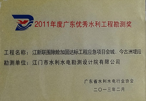 江新联围2011年度广东优秀水利工程勘测奖