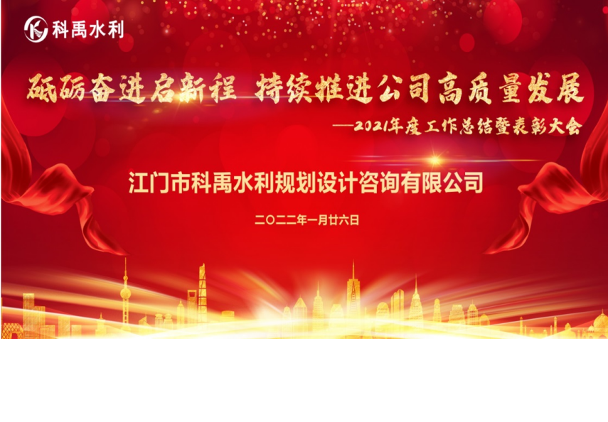 1月26日,江门市科禹水利规划设计咨询有限公司召开2021年度工作总结暨暨表彰大会。全体科禹水利人齐聚一堂,共同回顾意义非凡的2021,展望美好未来的2022。