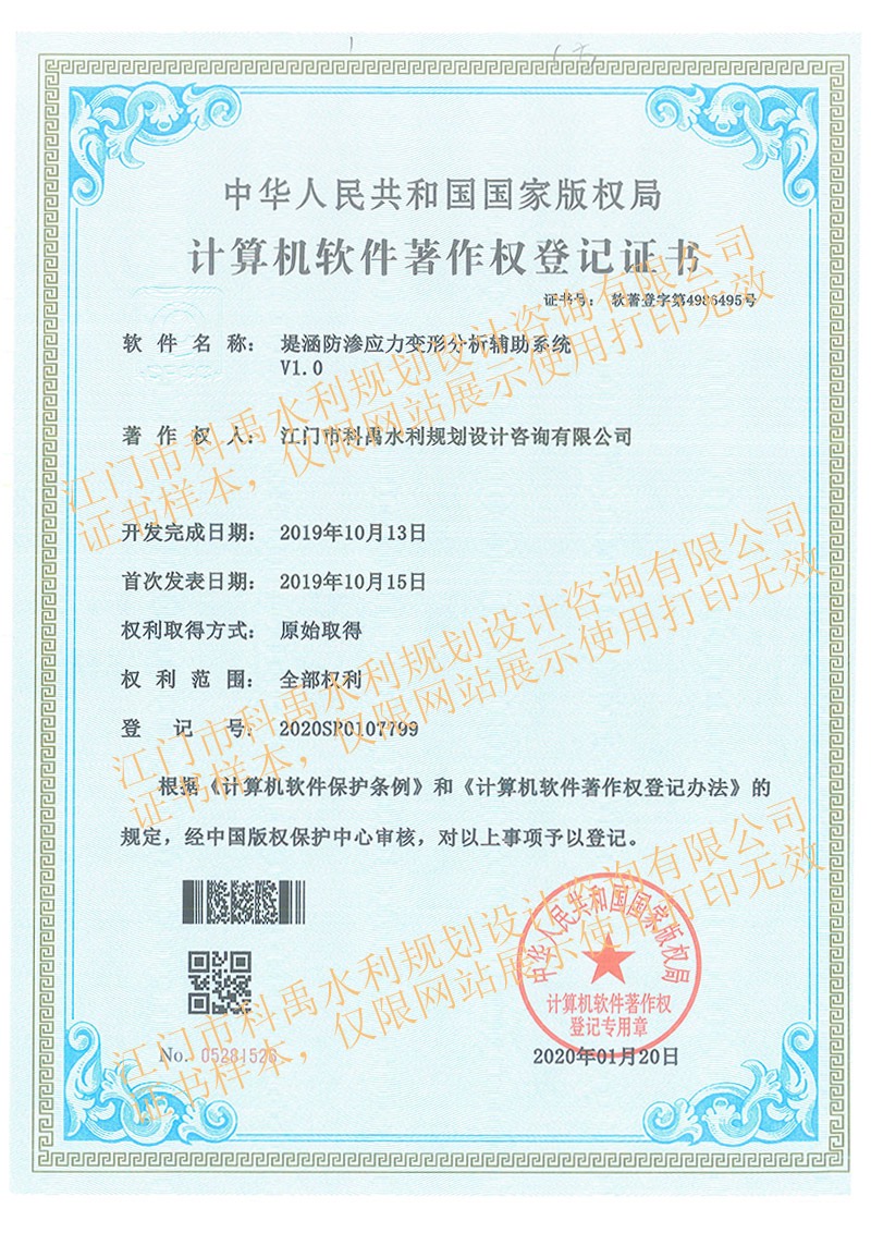 12+13堤涵防渗应力变形分析辅助系统+流域堤防渗流分析系统证书
