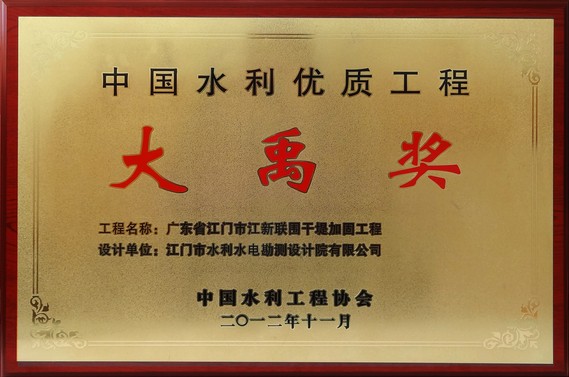 《广东省江门市江新联围干堤加固工程》获中国水利优质工程大禹奖